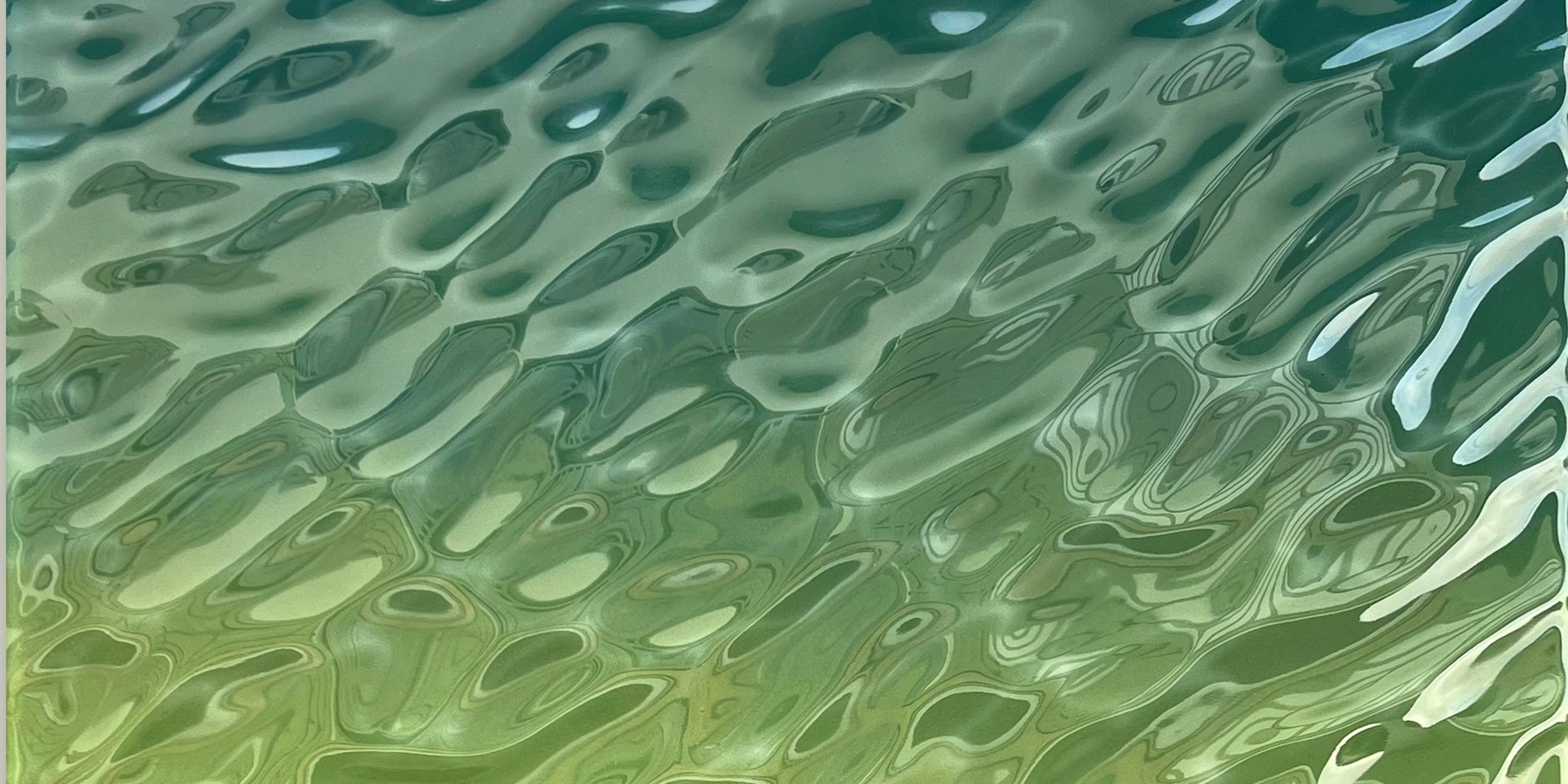 The practice of surfing introduced him to the pictorial effects of resin and made him aware of the ocean's perpetual motions. The attentive observation of waves and interplays of light on the water's surface directly nurtures his inspiration.
