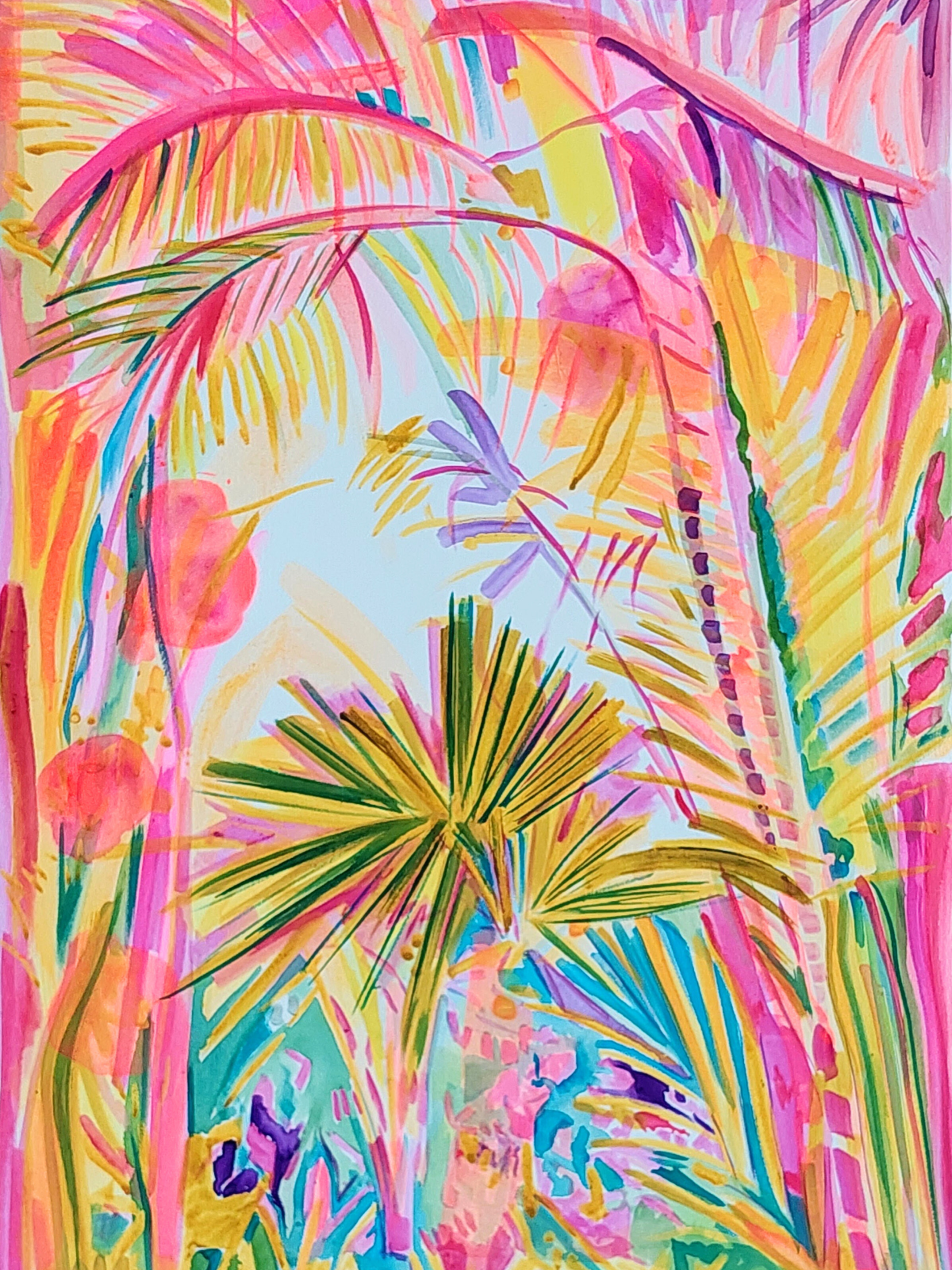 Avora’s process is just as important as the final piece. Her mark-making is fluid yet deliberate, revealing an interest in the fundamental aspects of painting—color, shape, pattern, and composition. Through this approach, she constructs a world where the past and present, the real and imagined, coexist in unexpected harmony.