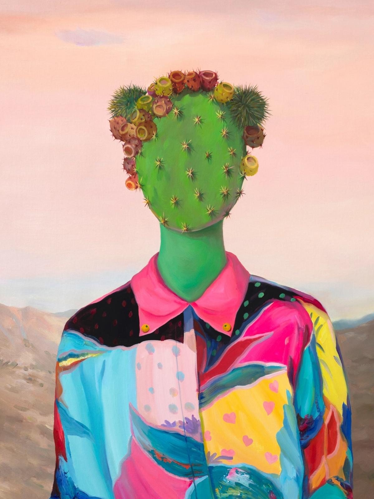 Jingyi Wang's mesmerizing artworks unveil a captivating narrative essence within her surreal and thought-provoking pieces. With a distinct blend of reality and the subconscious, her paintings transport viewers to an enigmatic universe where cacti, natural beings, and hybrid cacti-human characters coexist in perfect harmony. Each brushstroke and vibrant color palette invites contemplation, revealing the delicate interplay between humanity and nature.
