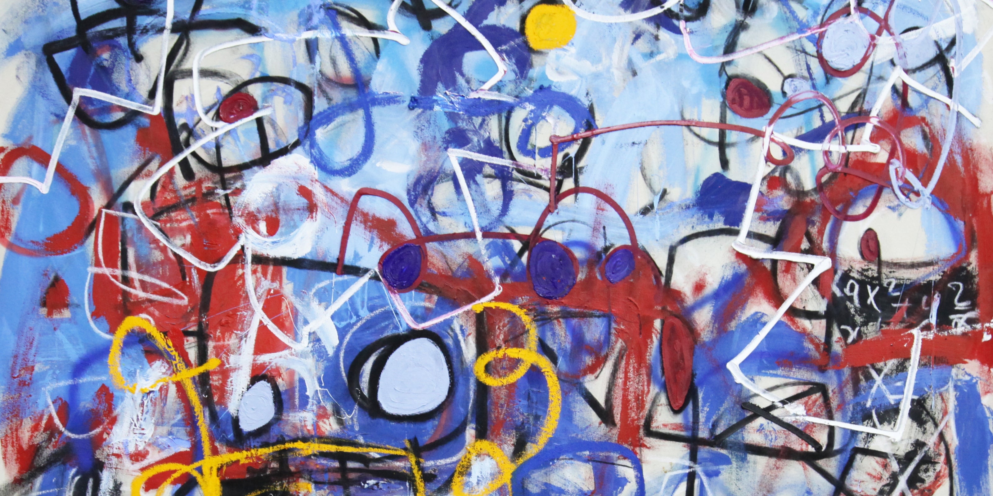 Tunisian abstract painter Taher Jaoui (b. 1978) creates wildly expressive canvases that mix abstraction, mathematics, and figuration. Inspired by graffiti, cartoons, and Abstract Expressionism, his spontaneous yet thoughtful process produces visually striking paintings and mixed media works. With degrees in engineering and theater, Jaoui draws on both rational and intuitive approaches in his dynamic abstract compositions. His art is a captivating dance between geometric abstraction and raw expressionist gestures.