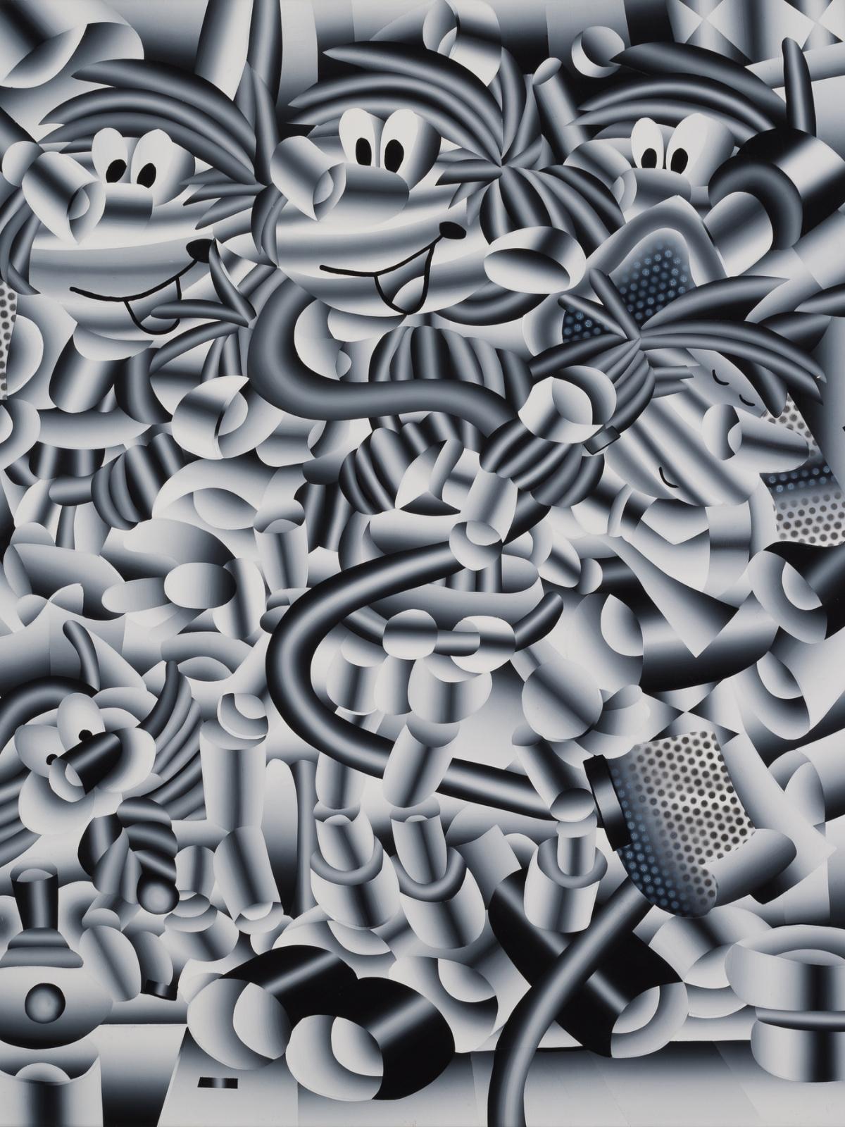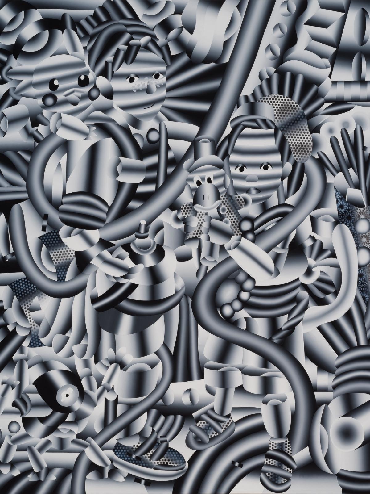 Bouillot's fascination with Japanese culture, an integral element of his creative ethos, intertwines with his French heritage, sparking a unique dialectic in his black and white art. The geometric precision of his pieces, often described as 'a piling of metal cylindrical and spheric forms', elegantly captures the fluidity of manga, the Japanese pop culture's vibrancy, and the nostalgic reminiscence of his childhood.